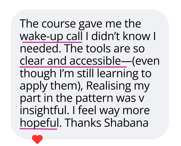 ❌ You’re hoping to use these strategies to change your partner or mould them into someone they’re not. This course is about empowering you with proven skills to building emotional safety - not forcing someone else to change.